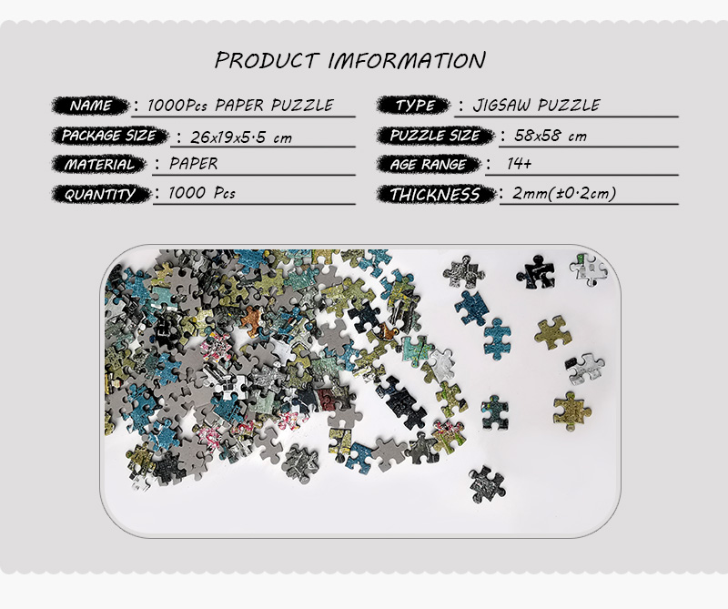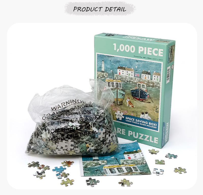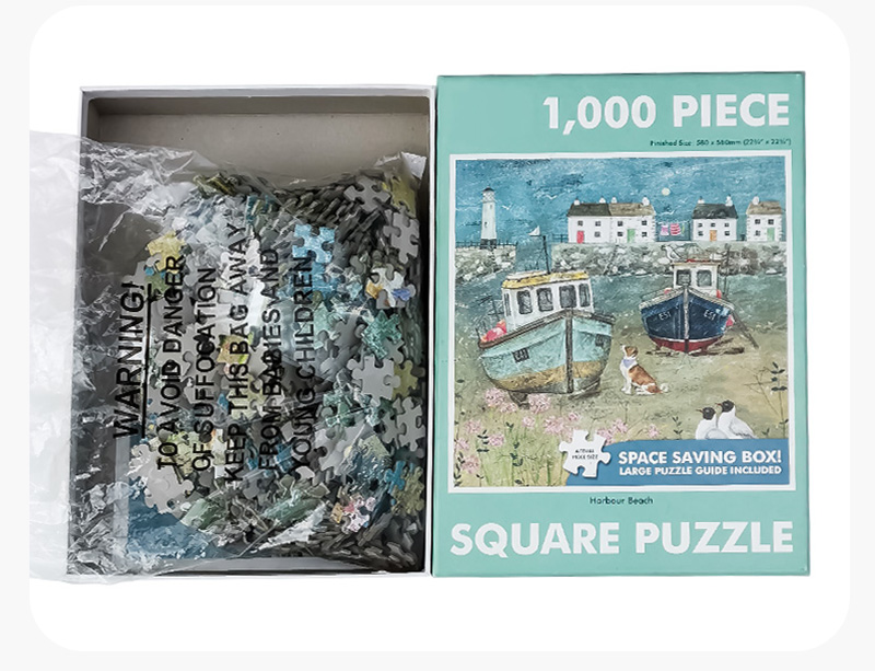As one of the most professional puzzle production manufacturers, we have invested a lot advanced machines and auxiliary equipment automation, such as Heidenberg printing machine, automatic card mounting machine, automatic beer machine, high tonnage hydraulic machine, automatic corner machine, automatic box sticking machine, fully sealed jigsaw shearing machine, automatic packaging machine and so on. The total investment is about 3 million RMB, covers an area of more than 10,000 square meters, the factory area of more than 8,000 square meters. It provides a guarantee to create high-quality jigsaw products.