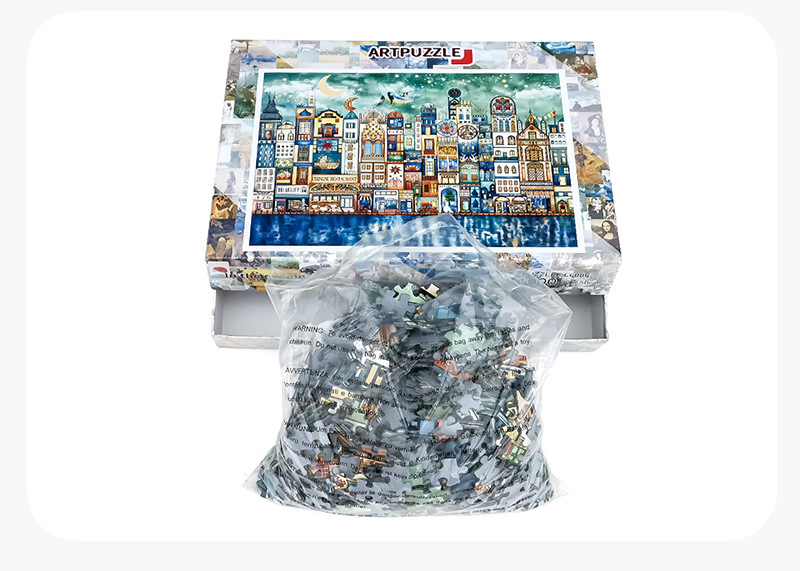 As one of the most professional puzzle production manufacturers, we have invested a lot advanced machines and auxiliary equipment automation, such as Heidenberg printing machine, automatic card mounting machine, automatic beer machine, high tonnage hydraulic machine, automatic corner machine, automatic box sticking machine, fully sealed jigsaw shearing machine, automatic packaging machine and so on. The total investment is about 3 million RMB, covers an area of more than 10,000 square meters, the factory area of more than 8,000 square meters. It provides a guarantee to create high-quality jigsaw products.