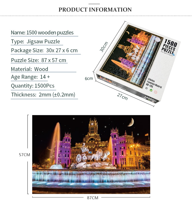 In Stock Customize High Quality 1500pcs Wooden Puzzle Beautiful Jigsaw Puzzle Game For Adult Toys